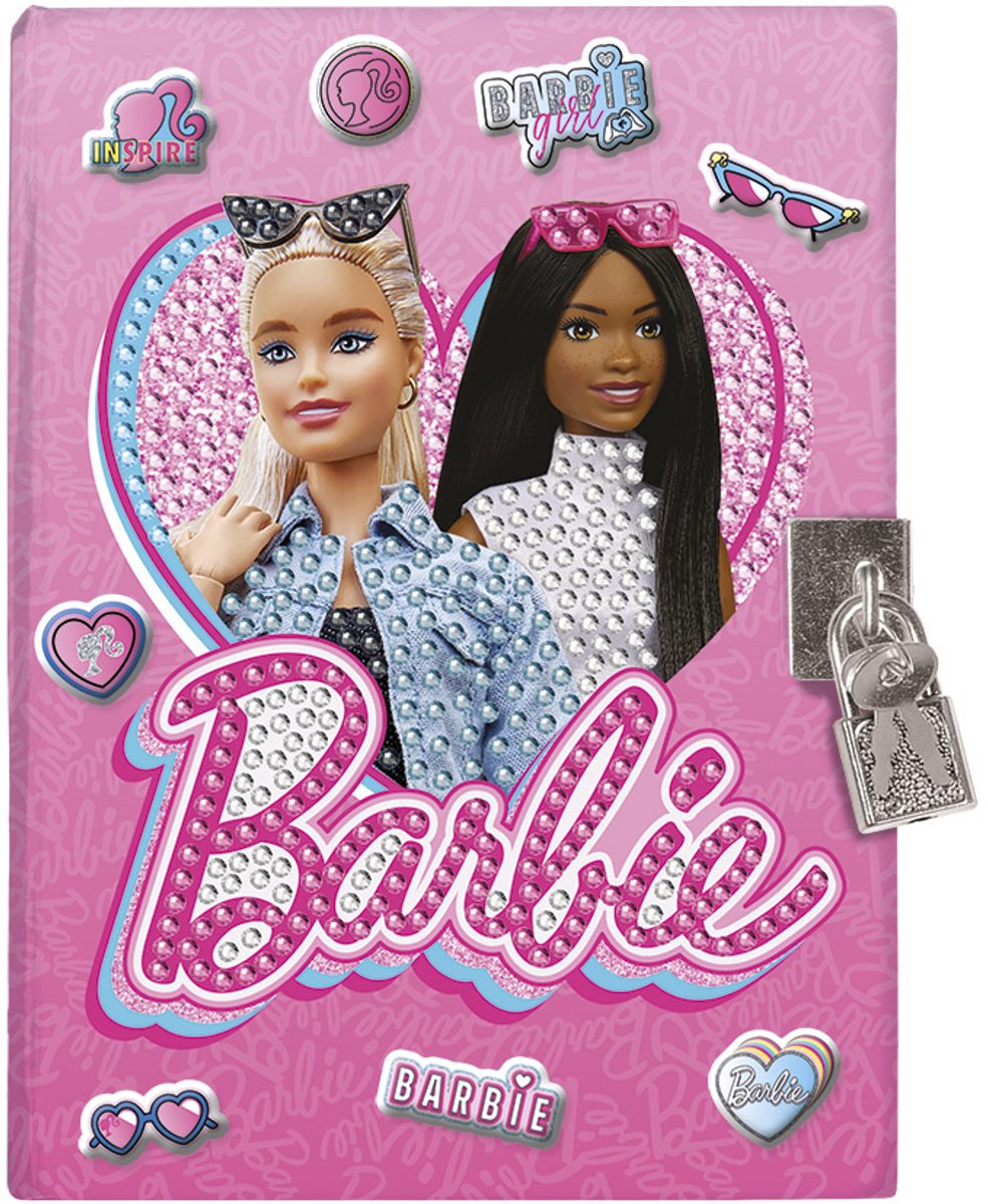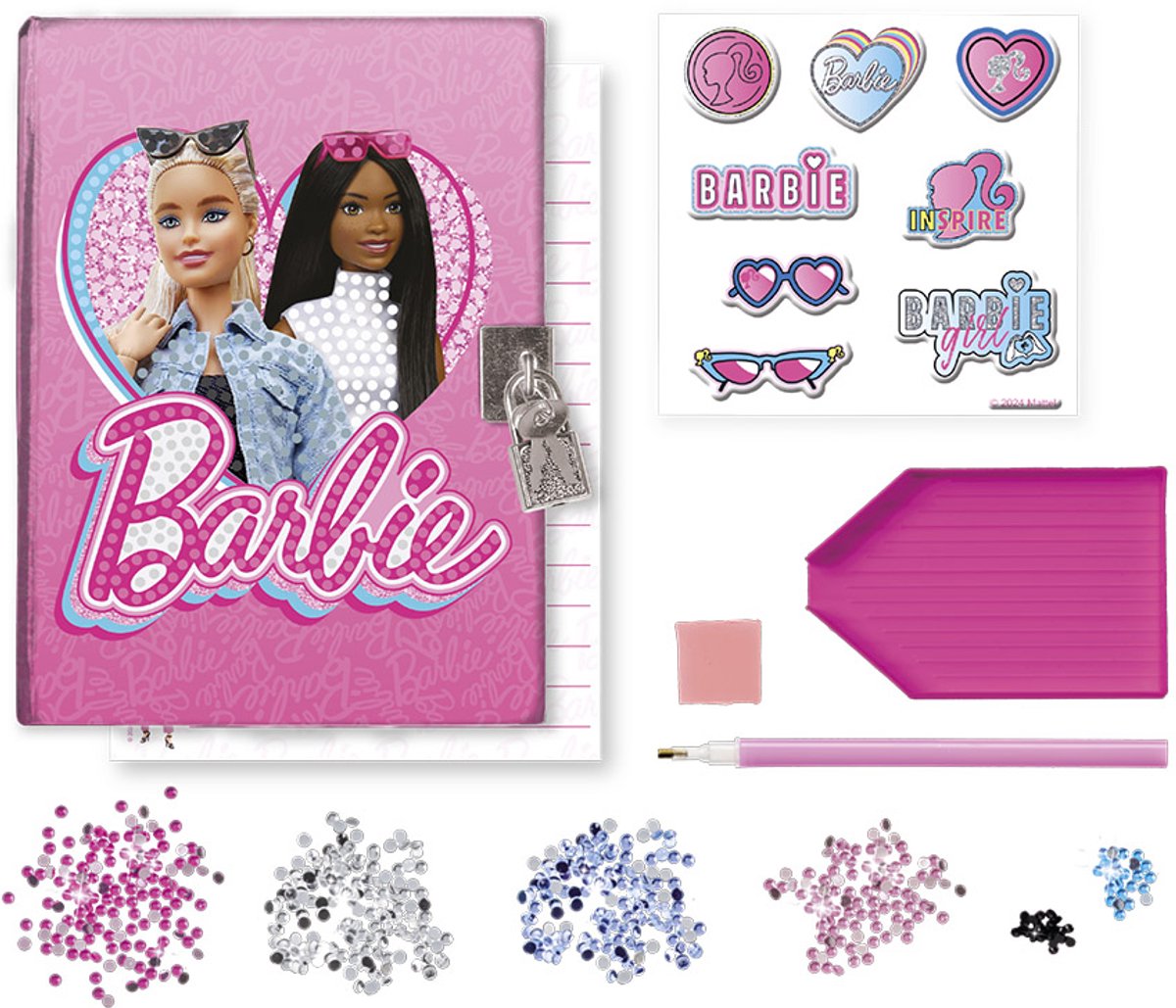 Младите фенове на Барби могат да персонализират корицата на дневника, като поставят цветни блестящи скъпоценни камъни върху определените зони, включващи стилни изображения и Барби;