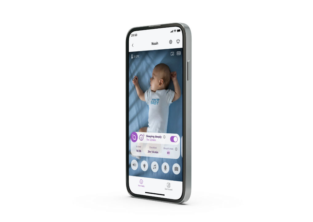 • Проследяване на съня и дихателната честота на бебето със SenseIQ;