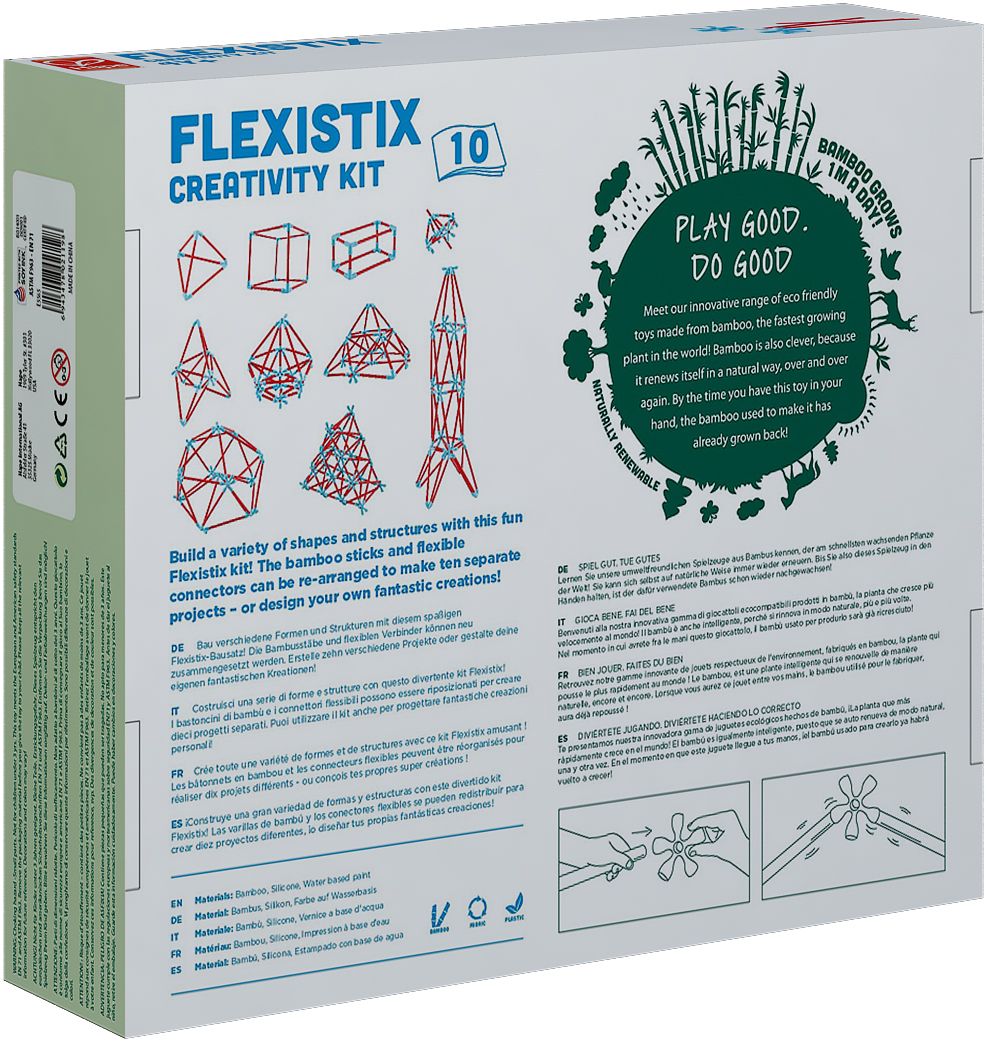 Бамбуковите пръчки и гъвкавите конектори могат да бъдат пренаредени, за да направите десет отделни проекта - или да проектирате свои собствени фантастични творения;