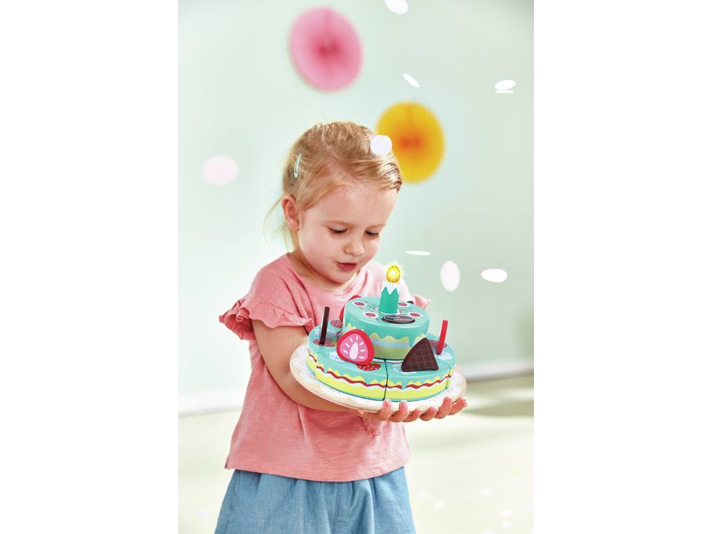Натиснете шоколадовите блокчета, за да чуете песента за рождения ден и запалете електрическата свещ;
