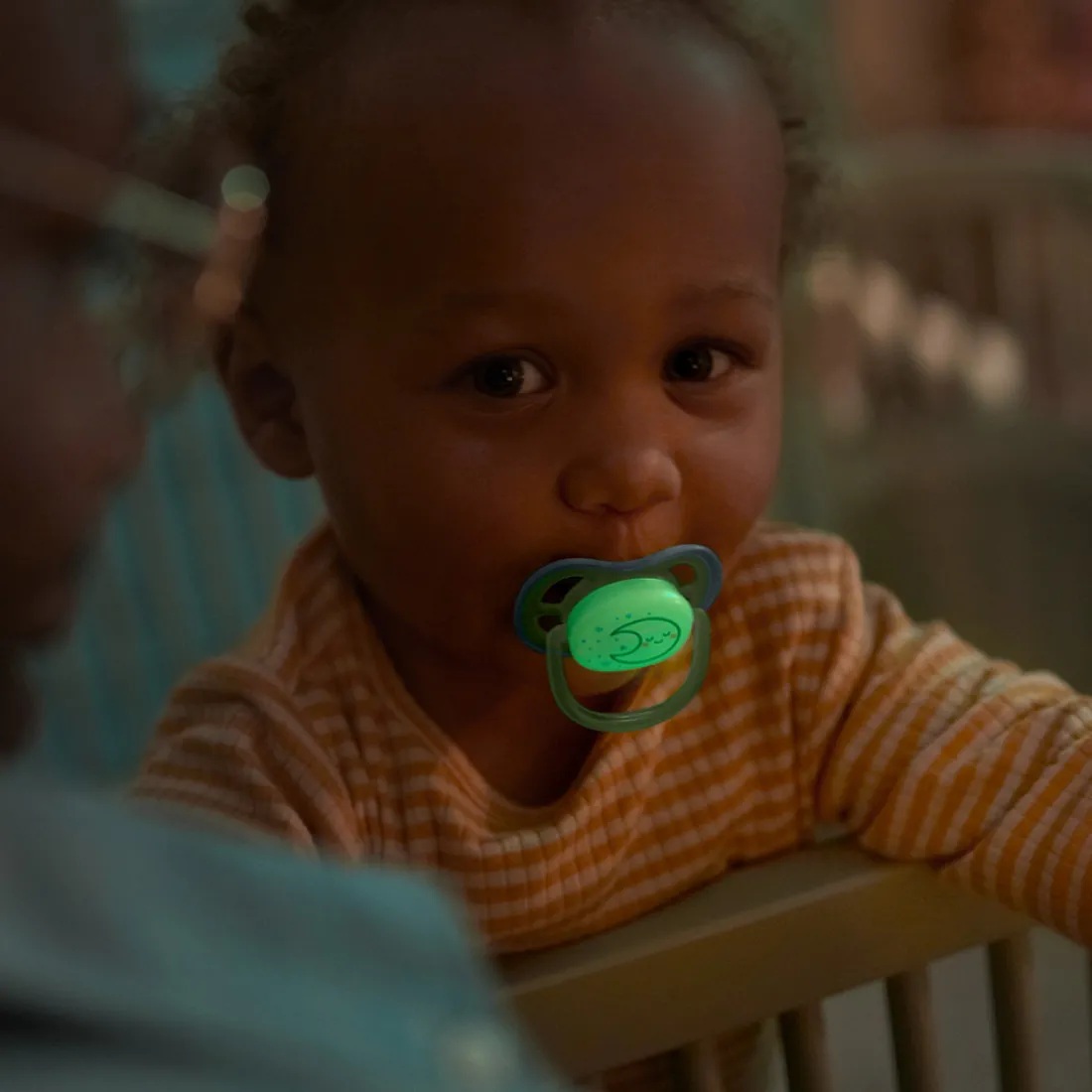 Комплект от 2 бр. светещи в тъмното ортодонтични залъгалки Philips Avent Ultra Air Night 18м+ и кутия за стерилизиране