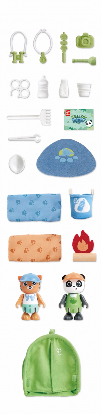 Този очарователен мини комплект за игра на открито използва фигурки, инструменти за къмпинг и забавни аксесоари, за да научи вашето дете на опазване на околната среда;