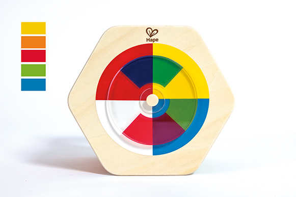 Чрез преместване на цветния диск децата могат да научат как се смесват цветовете;