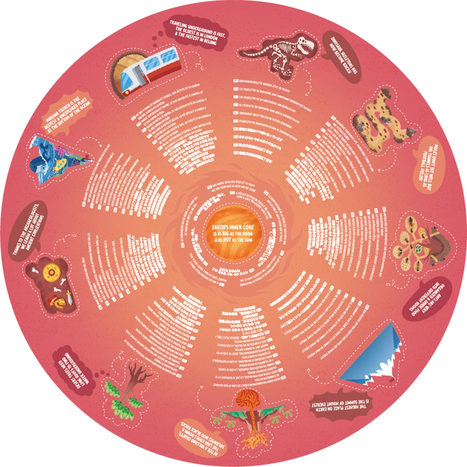 Включва двустранен плакат с допълнителни забавни факти и илюстрации, описващи какво се случва под краката ни;