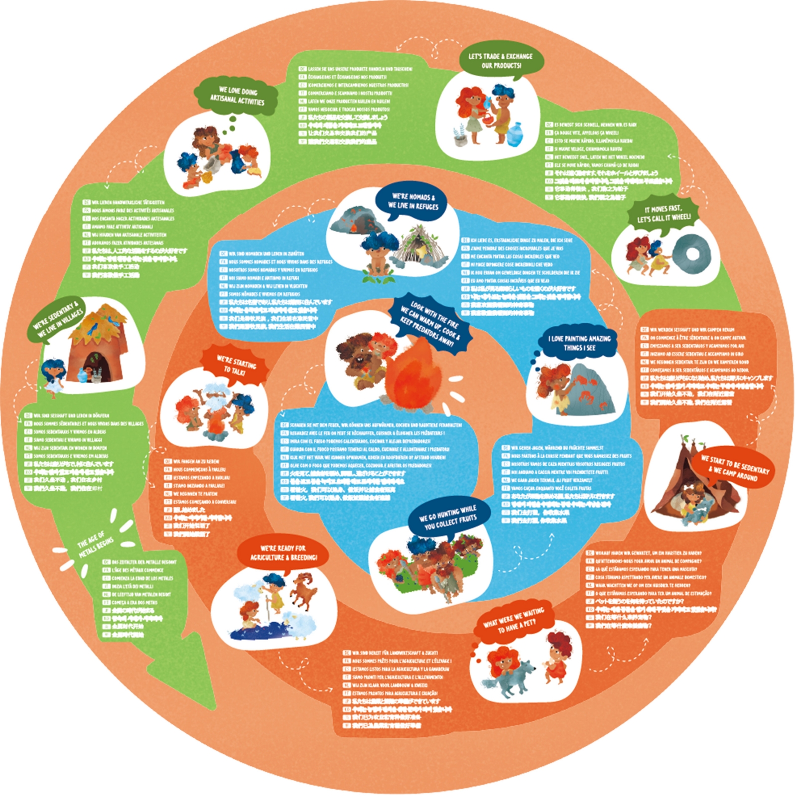 Включва двустранен плакат с допълнителни забавни факти и илюстрации, описващи епохите на палеолита, мезолита и неолита;