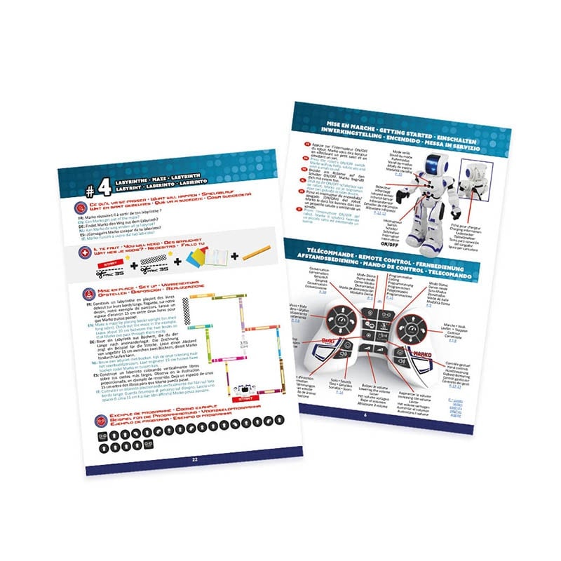 С инфрачервеното дистанционно управление програмирайте действията на робота и открийте 10 игри, за да научите за кодирането;