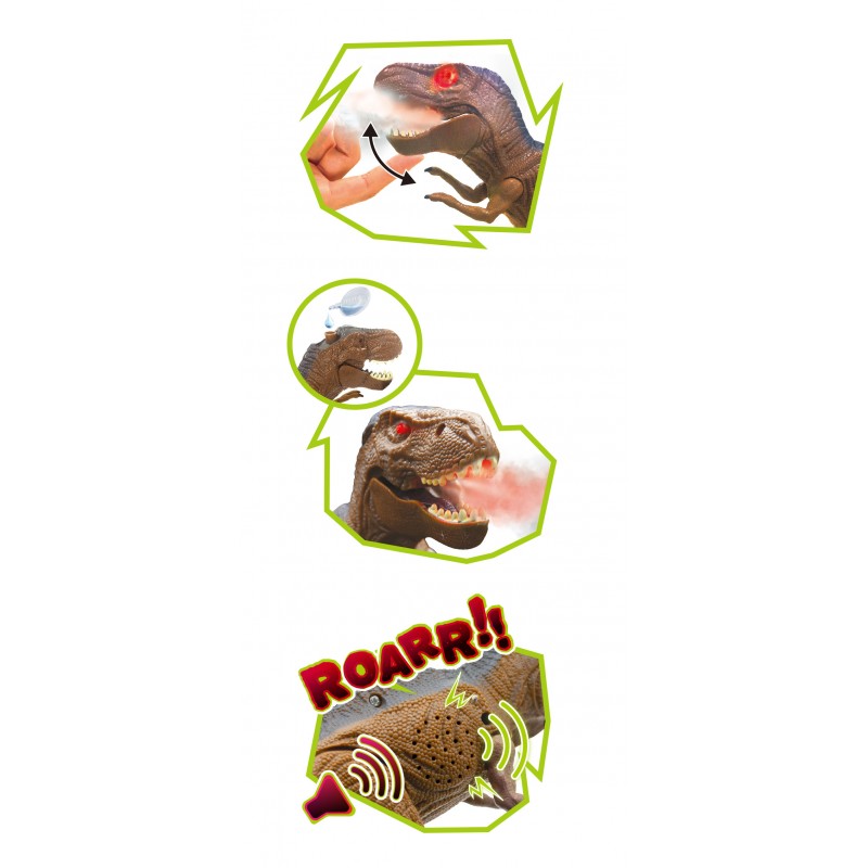 21 см T-Rex е проектиран да пленява въображението на всички малчугани с ревящи звуци, светещи очи и невероятната способност да бълва дим;
