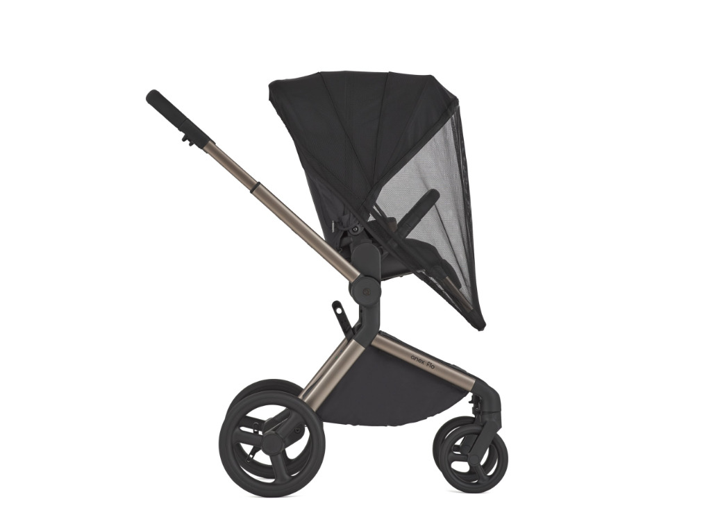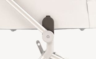 Въздухопропускливият сенник, изработен от плат, обогатен с UV филтър, предпазва бебето от пряка слънчева светлина и други външни фактори;