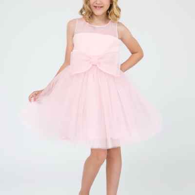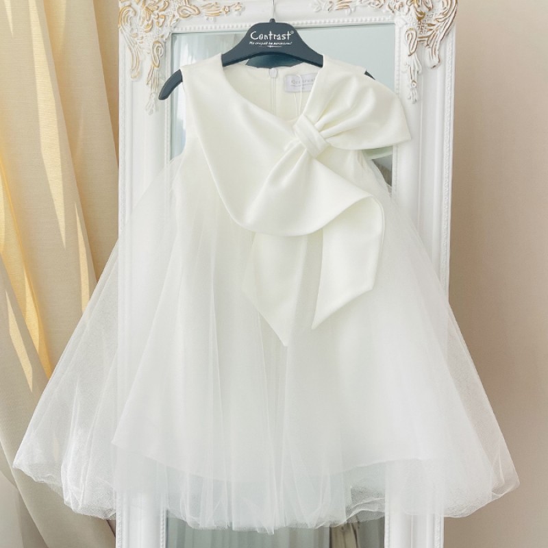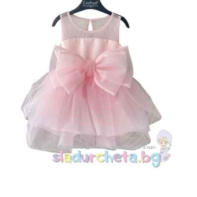 Официална рокля без ръкав в цвят екрю с голяма панделка отпред;