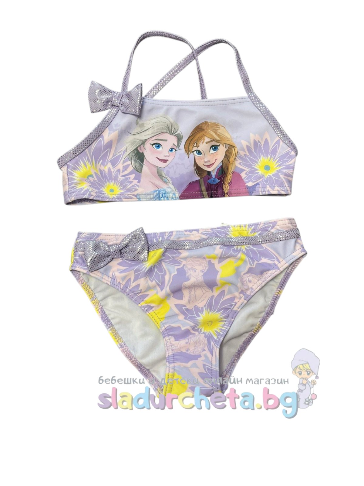 Банският е в лилав цвят с цветна апликация на Елза и Анна;
