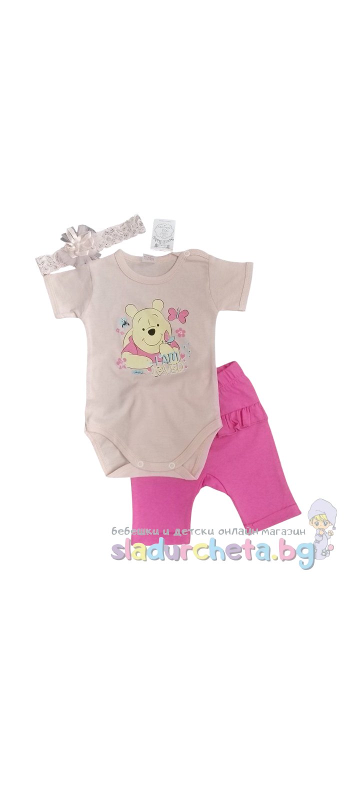 Бебешки и детски магазин "СЛАДУРЧЕТА" и марката "Светли" представят на Вашето внимание бебешки комплект от две части със следните характеристики: