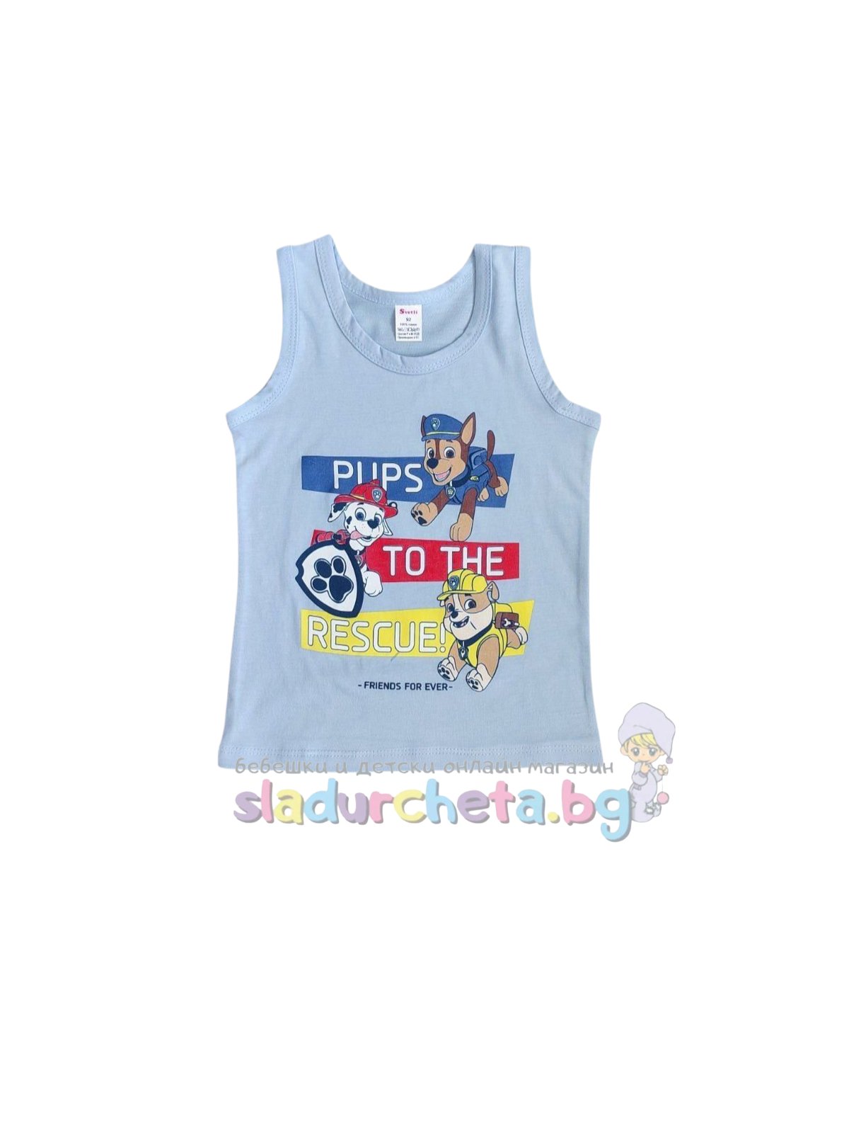 Потникът е в син цвят с цветна апликация на Пес Патрул;