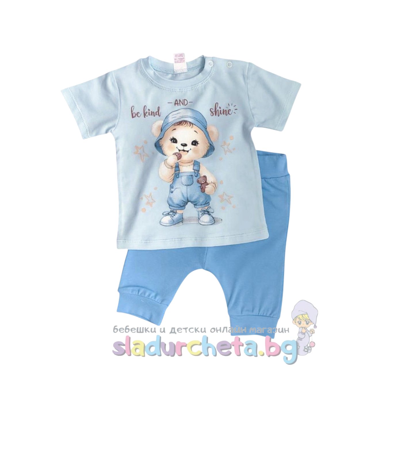 Бебешки и детски магазин "СЛАДУРЧЕТА" и марката "Светли" представят на Вашето внимание бебешки комплект от две части със следните характеристики: