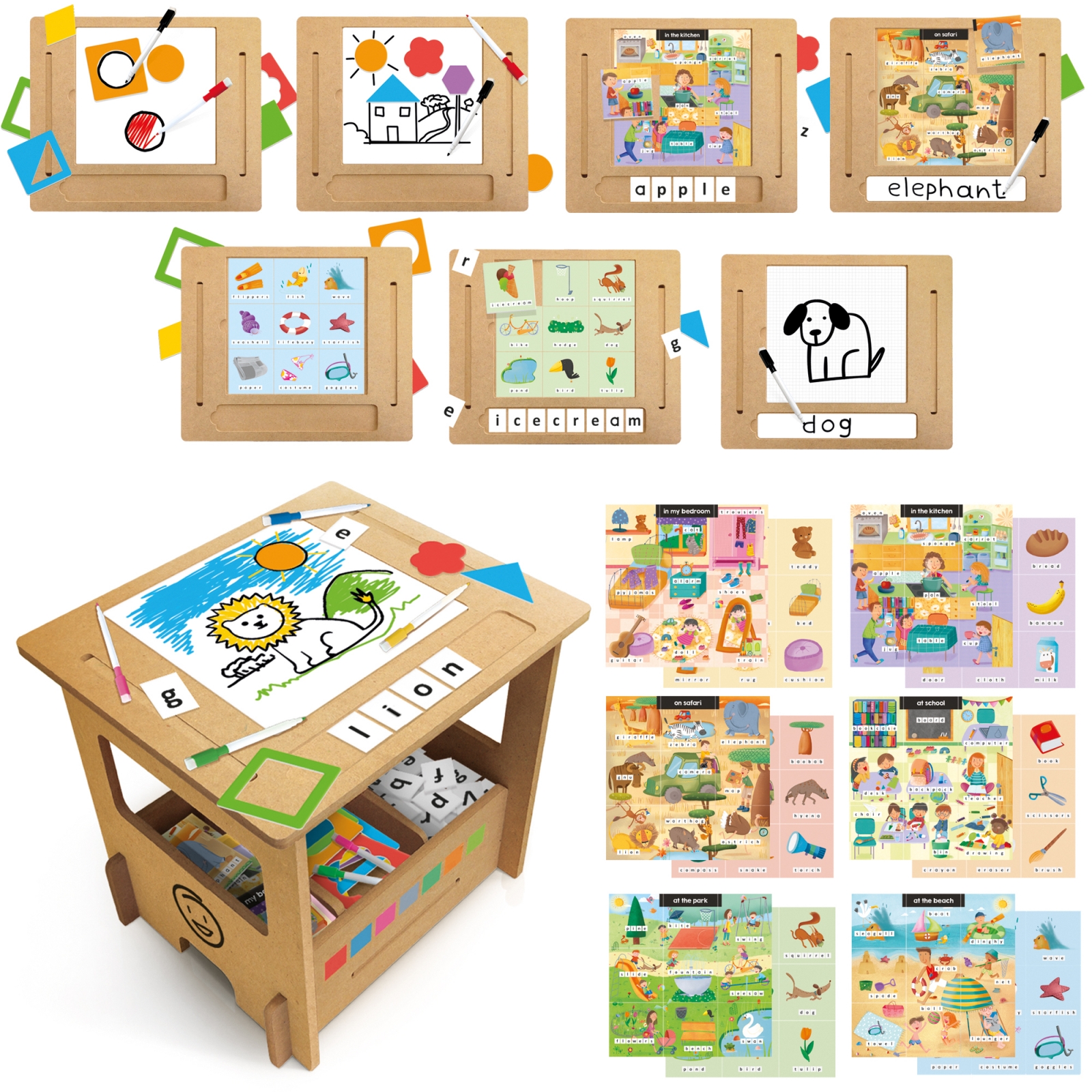 Практично дървено бюро, предназначено за деца в предучилищна възраст, за да извършват различни дейности напълно самостоятелно;
