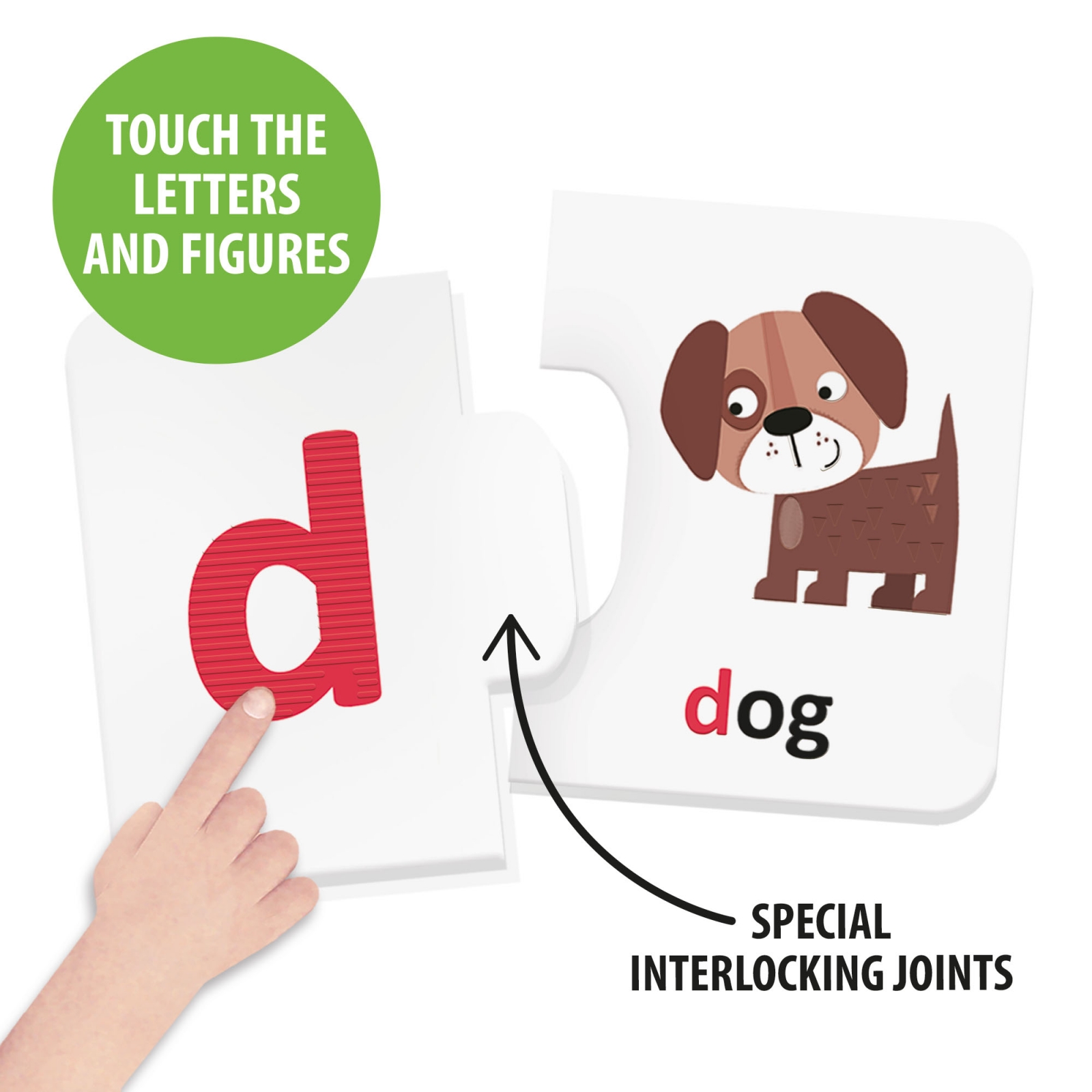 С тактилни плочки и специални преплетени съединения, тази игра позволява на децата да научат букви и думи по спонтанен и ангажиращ начин;