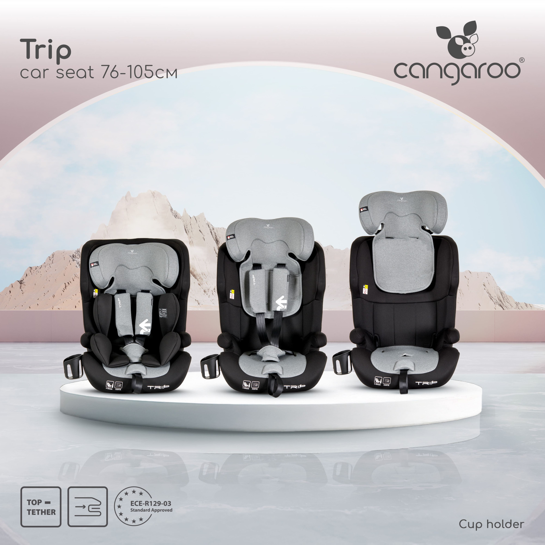 За деца от 76 до 105 см – с вграден 5-точков предпазен колан, монтаж по посока на движението, ISOFIX + Top Tether система за максимална стабилност;
