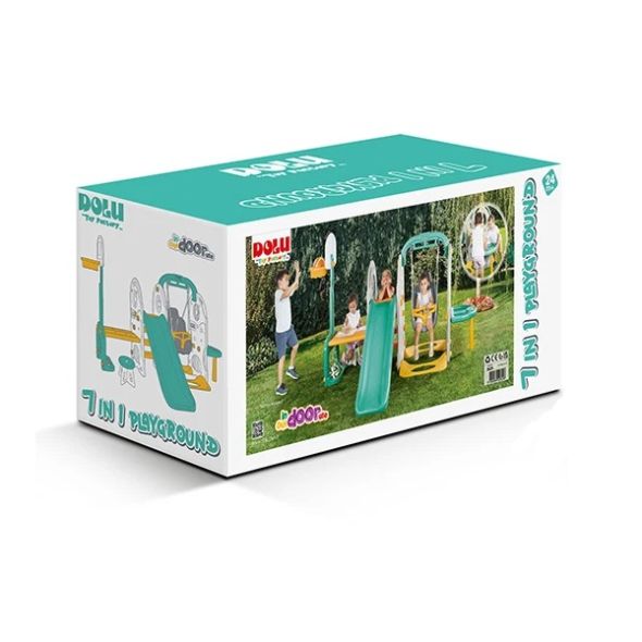 7 функции в 1: Включва маса за дейности, лост за набирания, люлка, пързалка, бюро с табуретка, баскетболен кош и футболна врата;