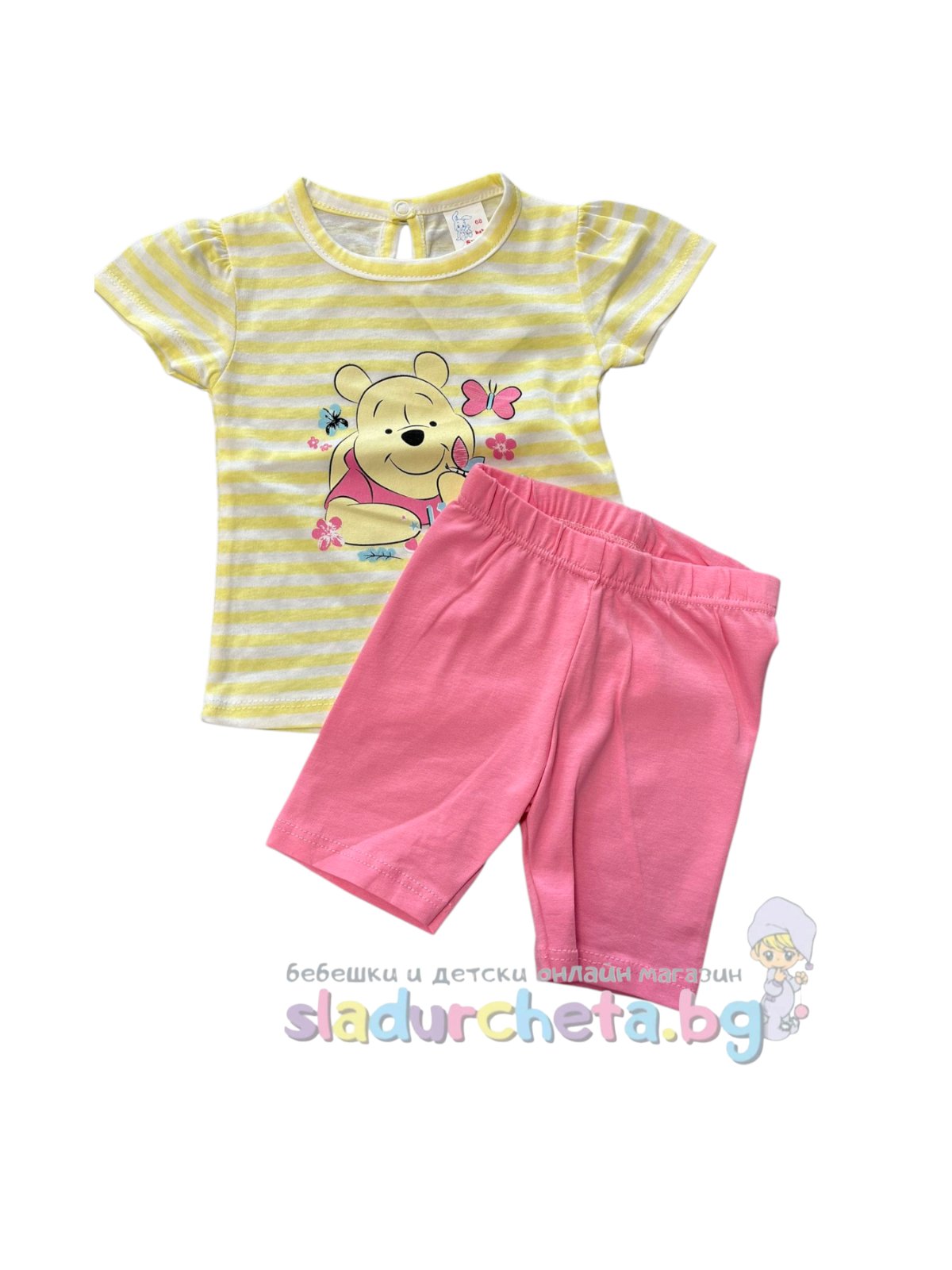Туниката е с къс ръкав в жълт цвят с апликация на мече;
