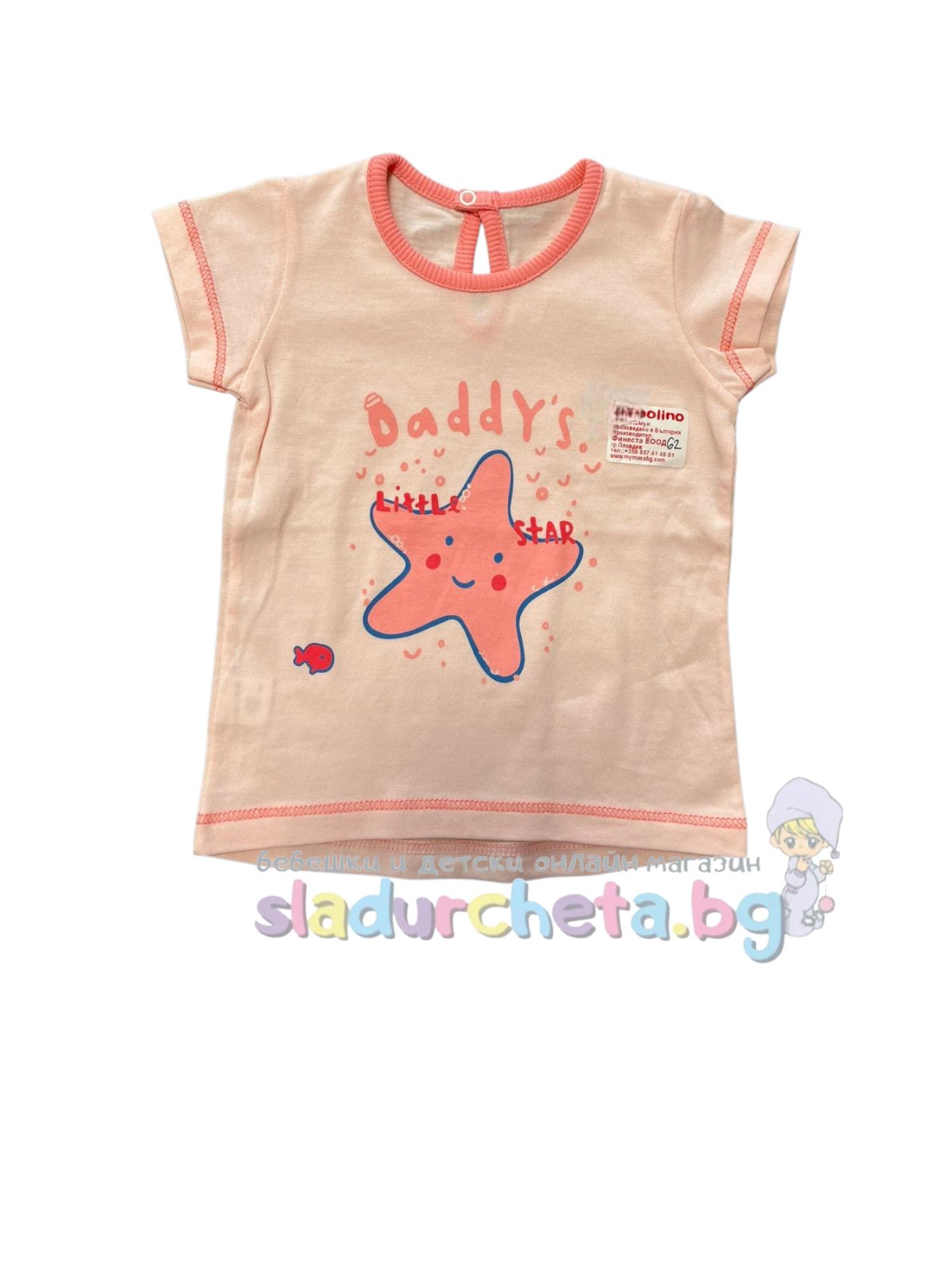 Тениската е с къси ръкави в светлооранжев цвят с акцент звезда;