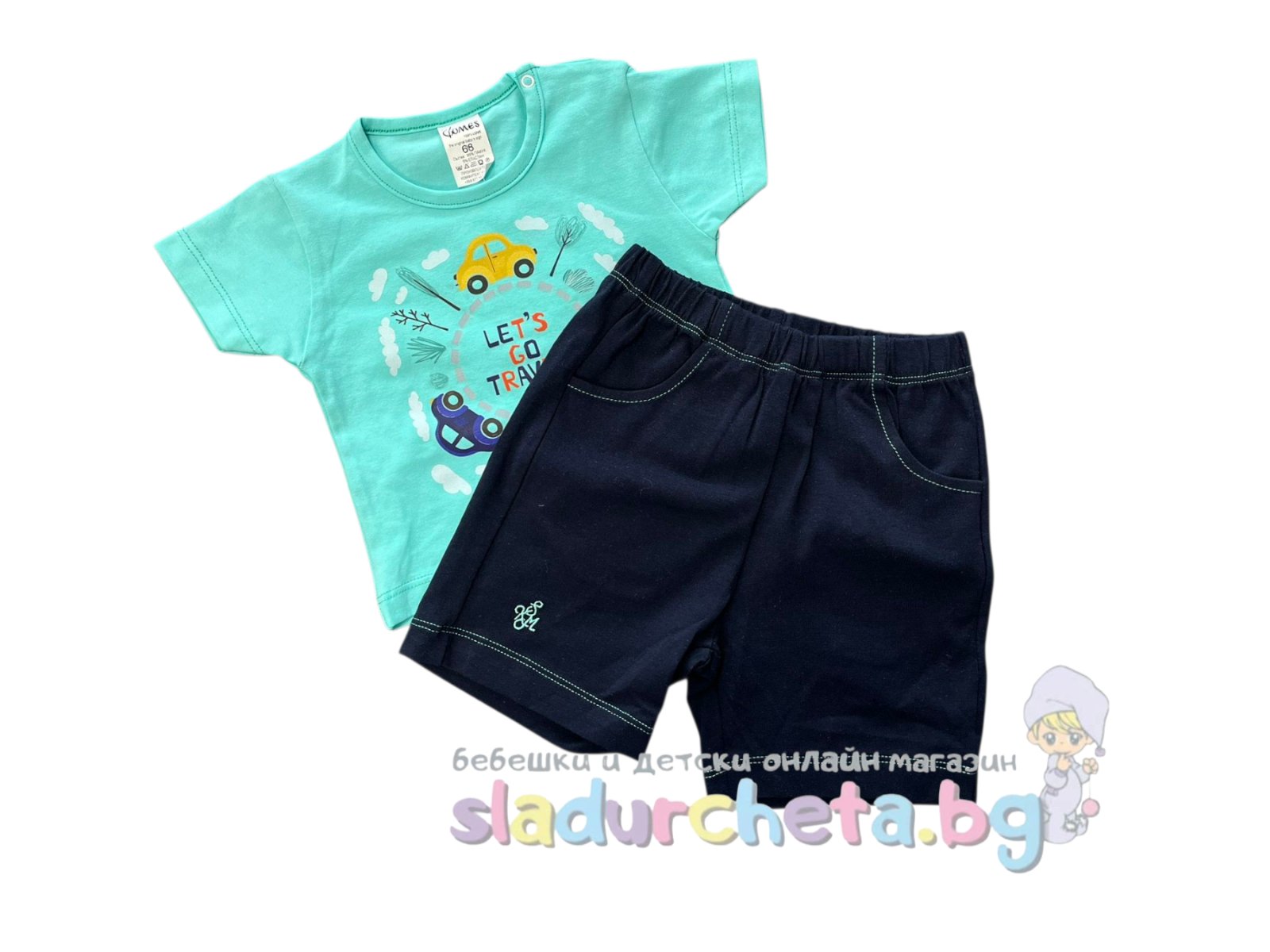 Бебешки и детски магазин "СЛАДУРЧЕТА" и марката "Комес" представят на Вашето внимание бебешки комплект от две части със следните характеристики: