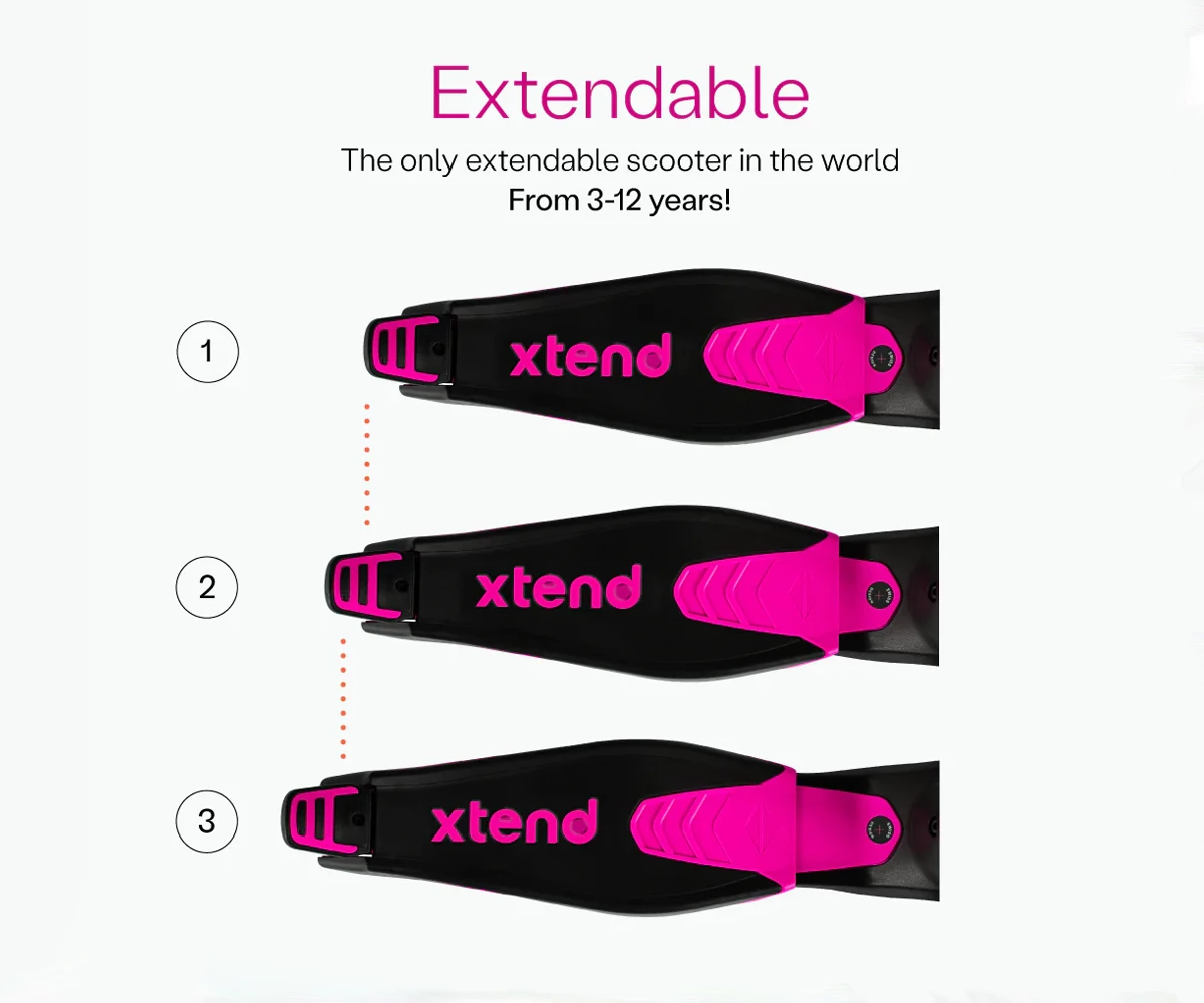 • 3-степенната дъска за крака на XtendScooter заедно с издръжливия дизайн му позволяват да придружава децата през цялото им детство;
