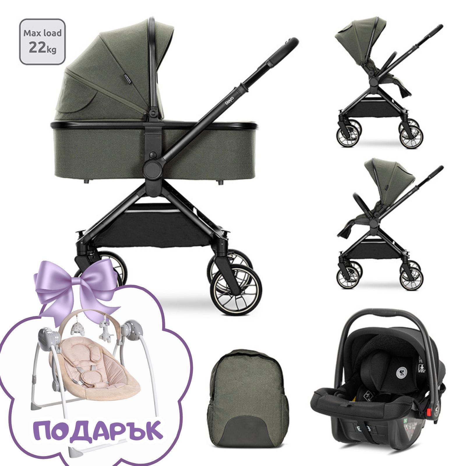 Бебешка количка 3в1 Lorelli Reya, Green + ПОДАРЪК ЛЮЛКА