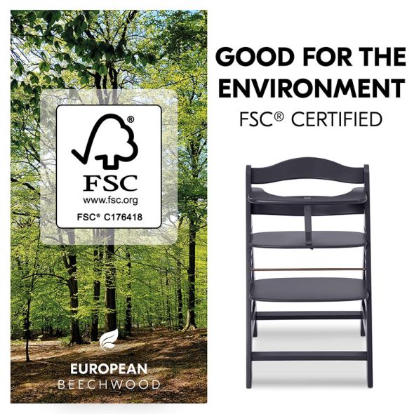 Столче за хранене и шезлонг Hauck Alpha, дървено Dark Grey