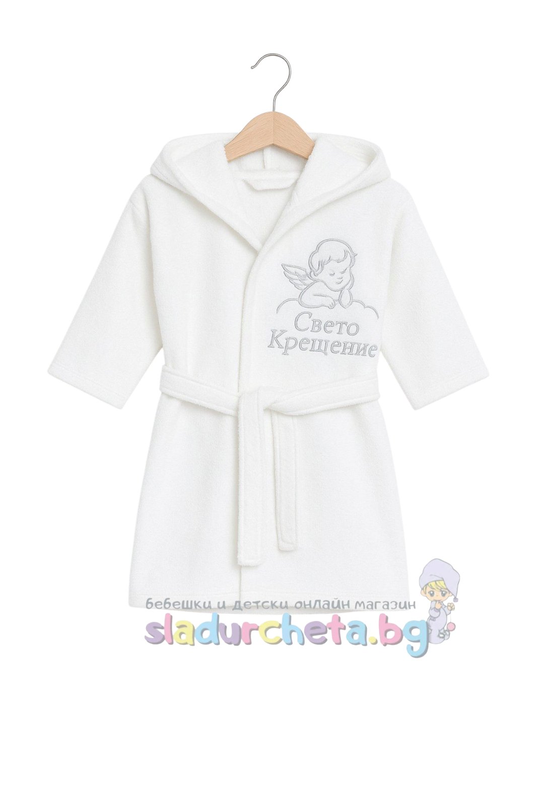 В бял цвят с бродерия на ангелче и текст СВЕТО КРЪЩЕНИЕ ;