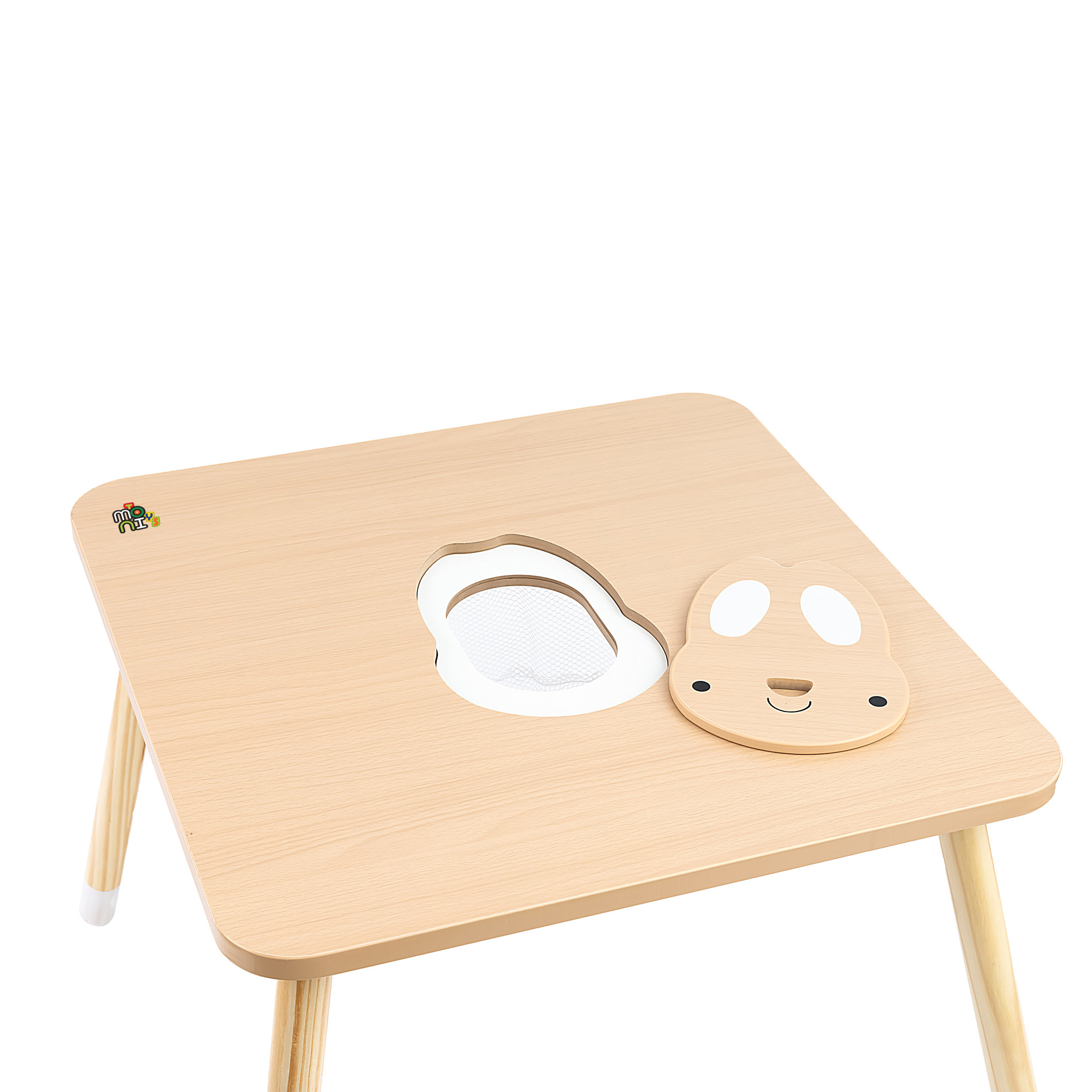 • Масата разполага с удобно място за съхранение на играчки или учебни материали, разположено по средата;