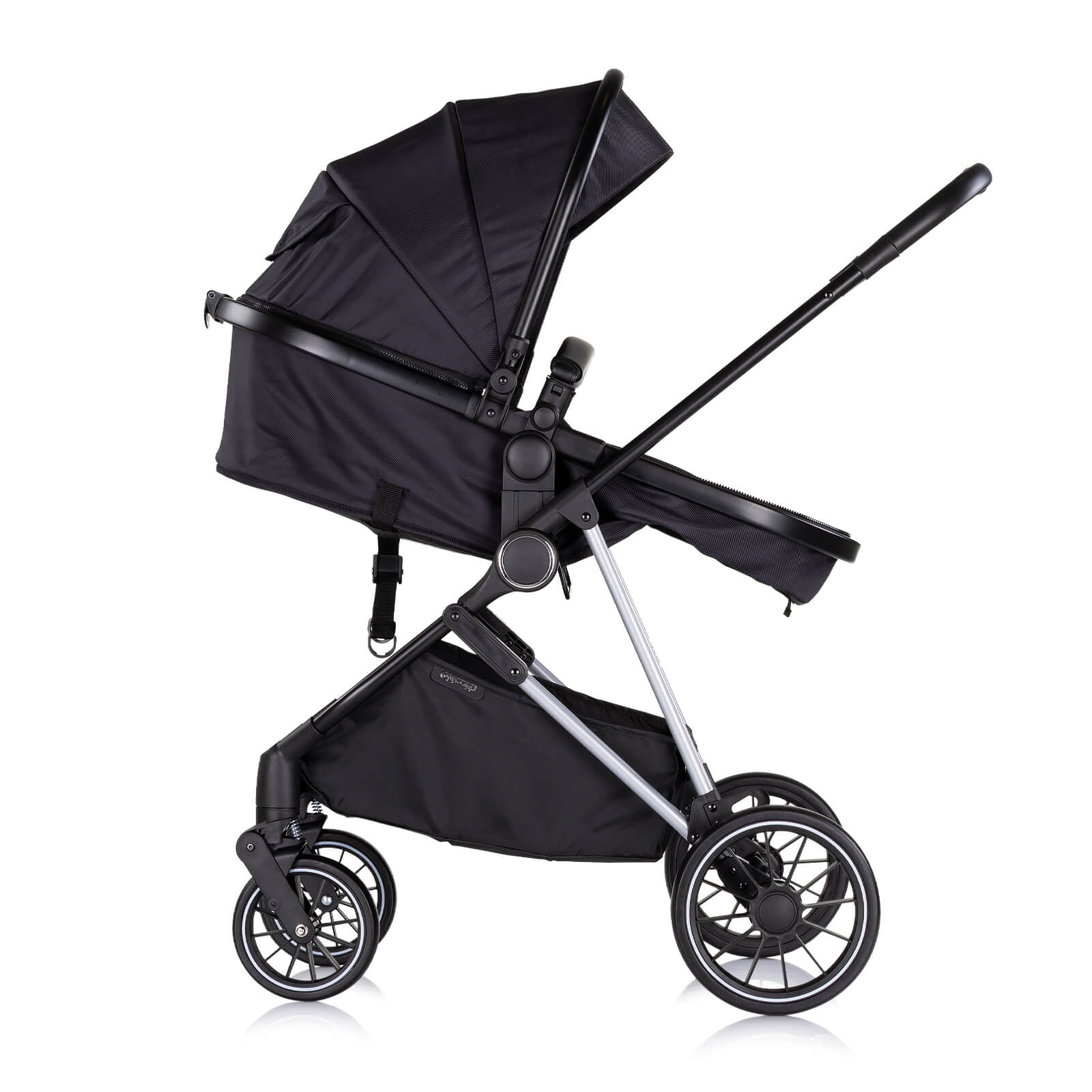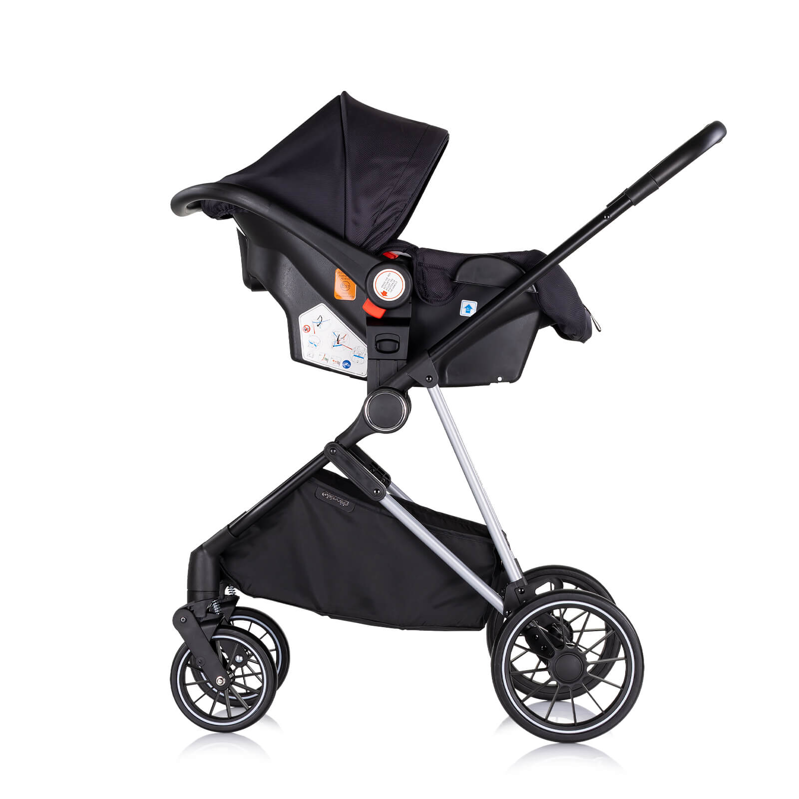 Съвместимо с рамата на количката, посредством адаптори, които са включени в комплекта;
