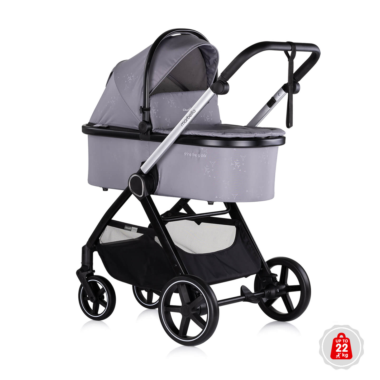 Съвместимо с рамата на количката, посредством адаптори, които са включени в комплекта;