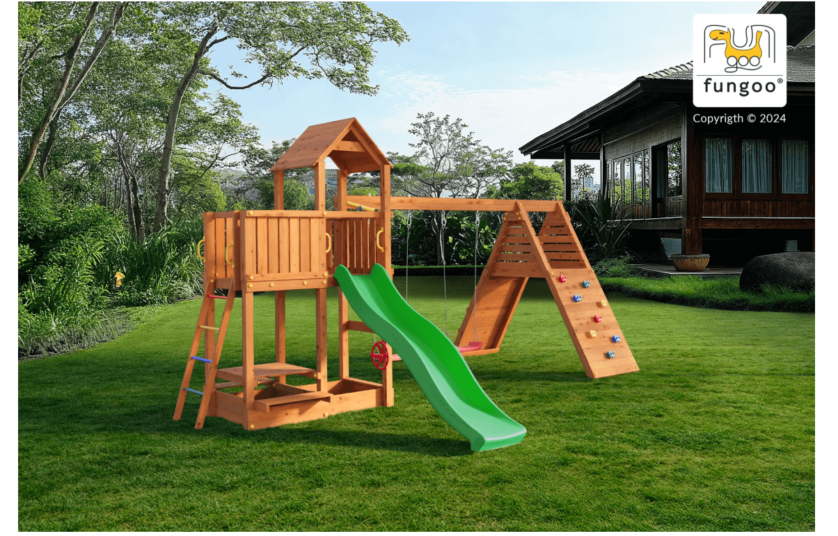 Детска площадка с пързалка и 2 люлки Fungoo Fluppi Double