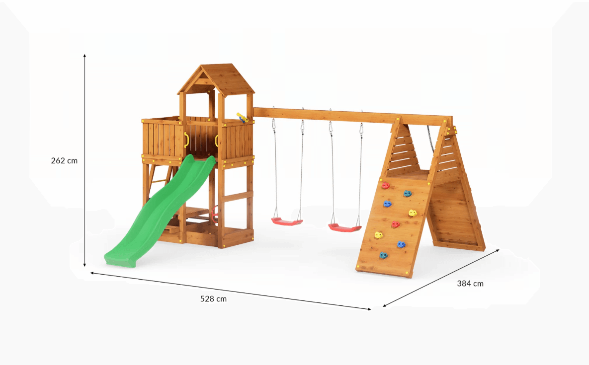 • Размер на сглобената площадка: 528 х 384 х h262 см;