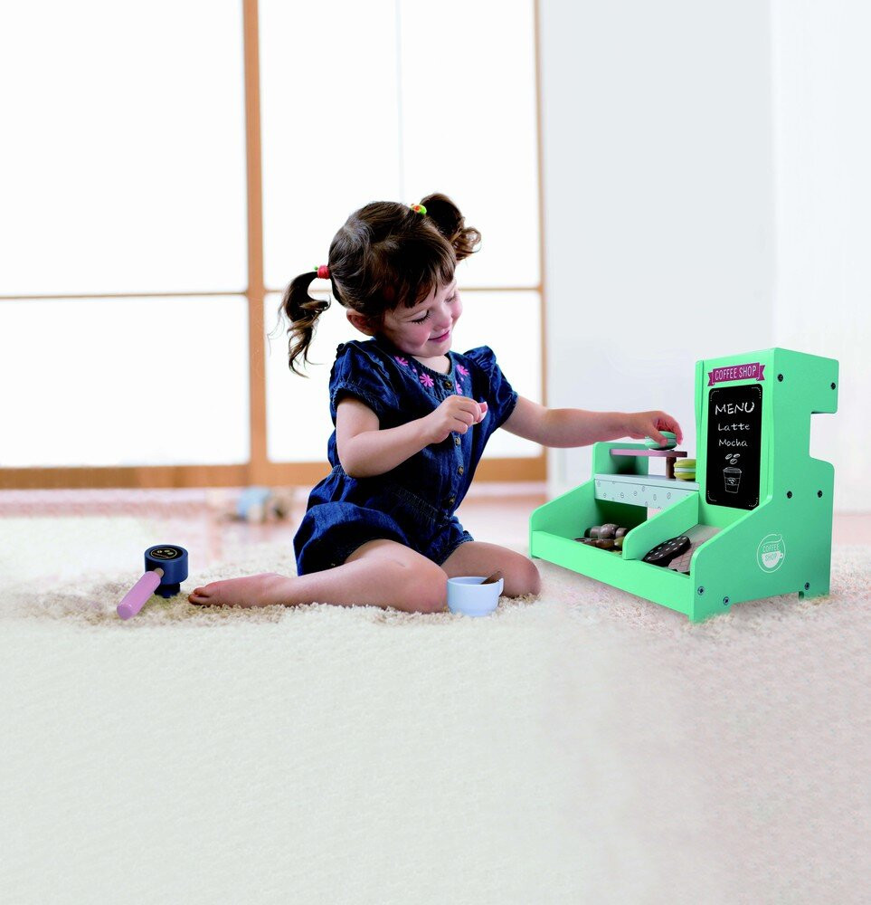 Комплектът включва вградена кафе машина, множество сладкиши за поднасяне, рафтове за подреждане, чаша за кафе и бъркалка.