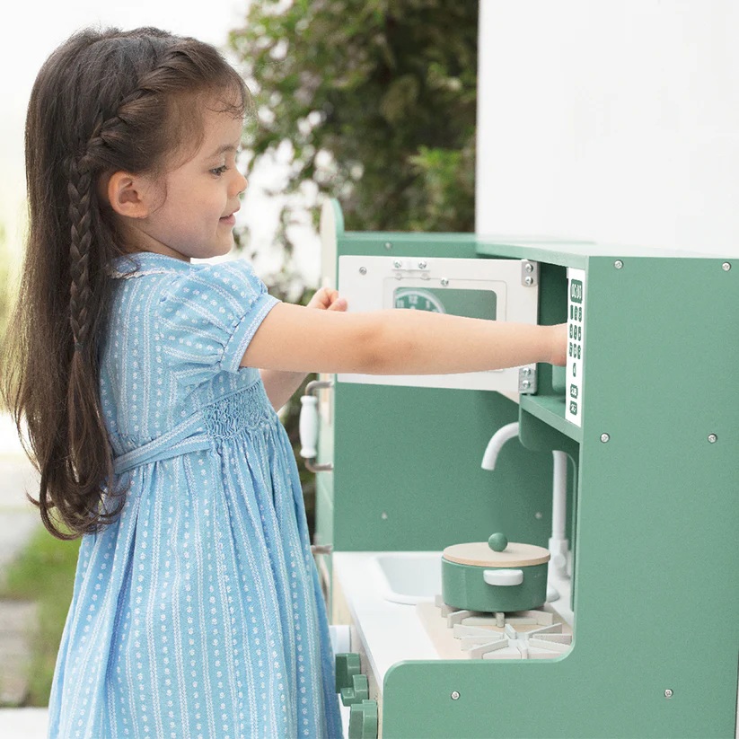 • Тази детска кухня комбинира стилен винтидж дизайн с изключителна функционалност, за да осигури часове на ролеви игри и творчество;