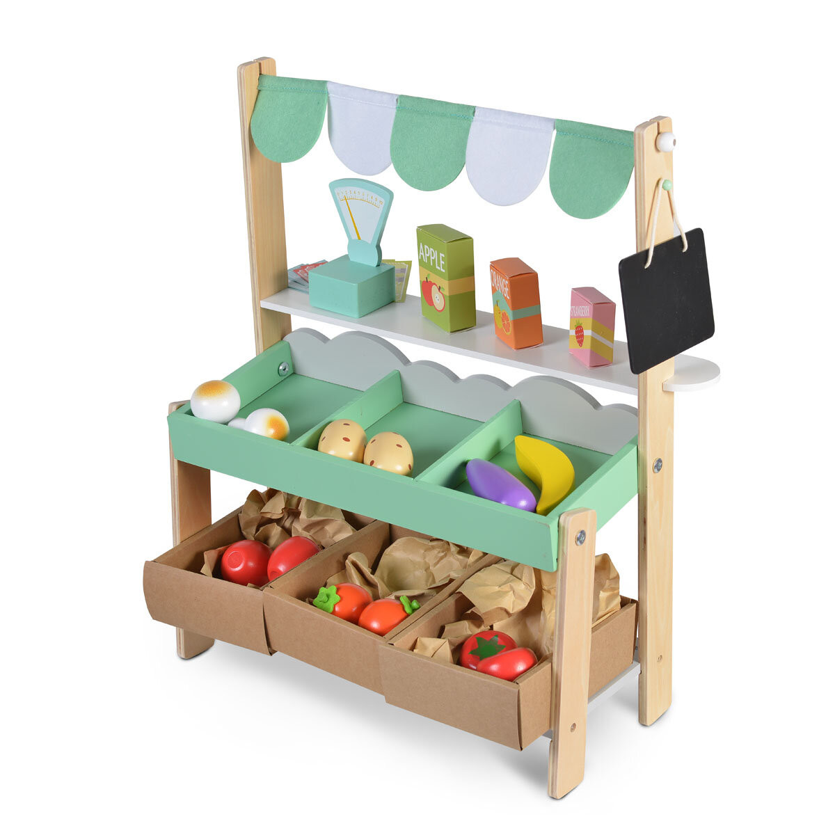 Дървеният супермаркет е изработен от висококачествен дървен материал и е напълно безопасен за децата.