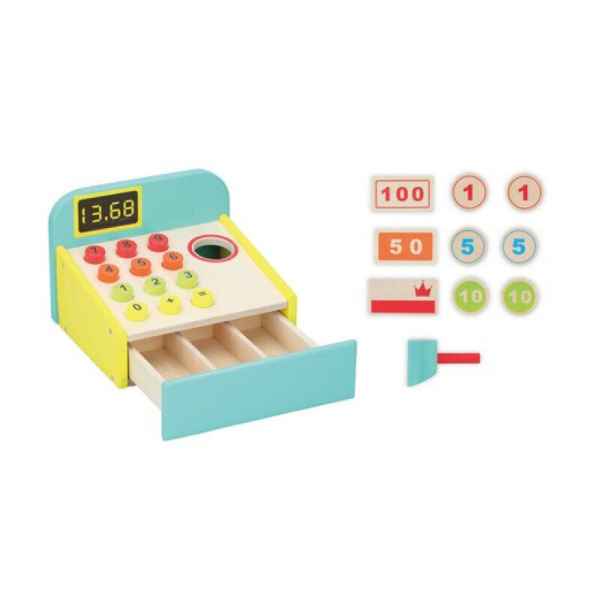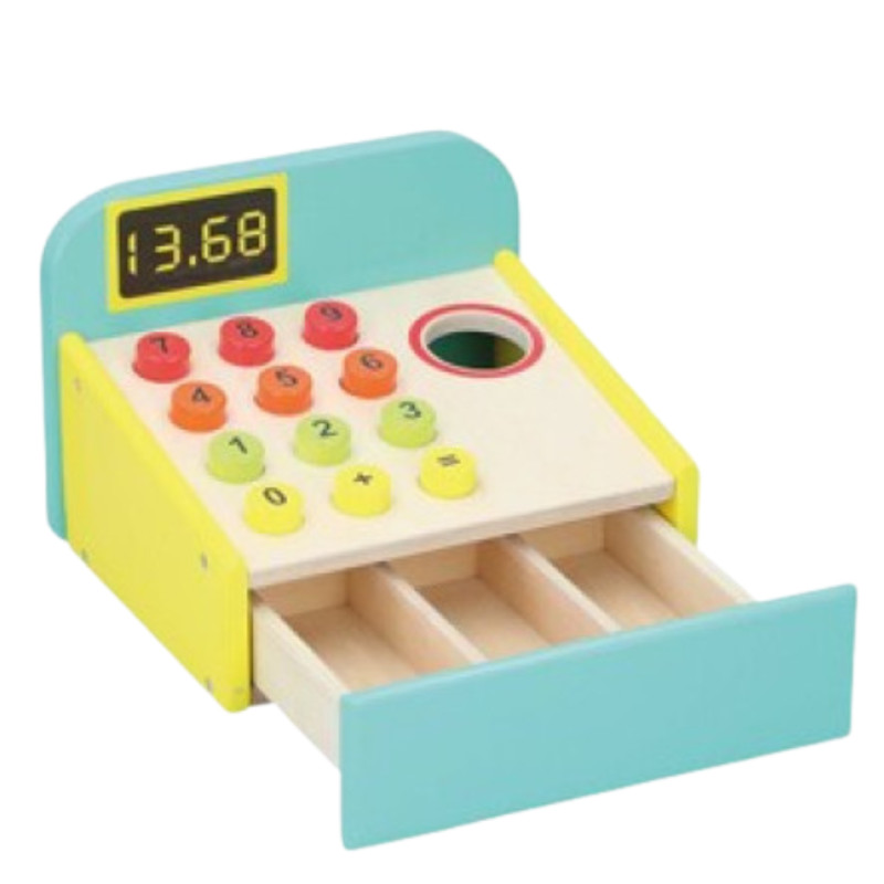 Бебешки и детски магазин "СЛАДУРЧЕТА" и марката "Marionette" представят на Вашето внимание дървен касов апарат играчка със следните характеристики: