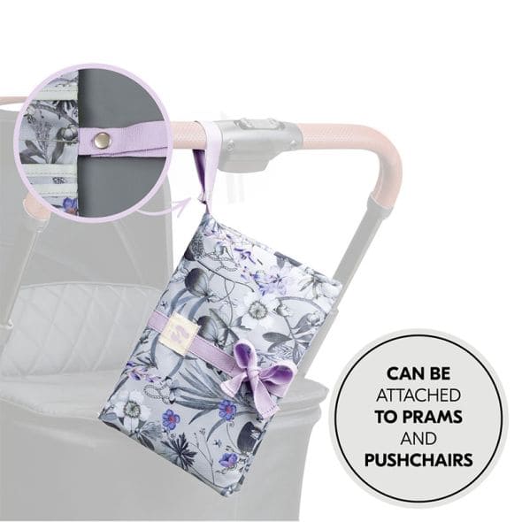 Благодарение на практичната лента с щипка, можете също да прикрепите чантата за пелени към дръжката на количката, за да е винаги под ръка;