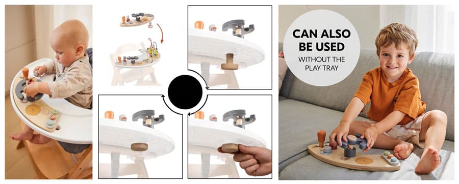 Децата обичат да се преструват, че шофират! Превърнете своето дървено столче за хранене Alpha+, Beta+ или Arketa (предлагат се отделно) в първото превозно средство на вашето дете с Play Cockpit;