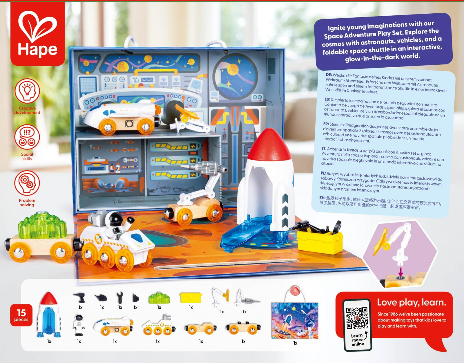 Разпалете младото въображение с този комплект за игра Hape Space Adventure;