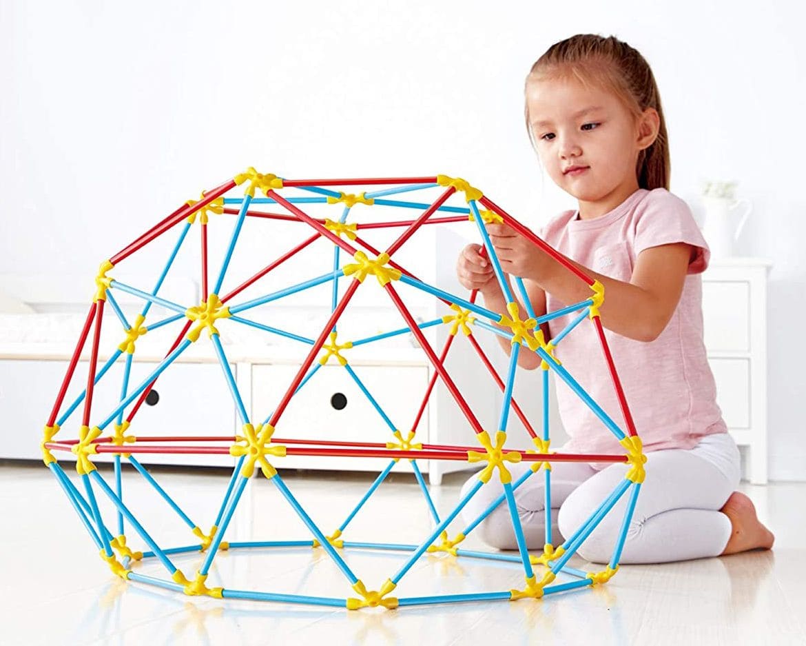 Изградете сами геодезичен купол и фермен мост с този забавен, иновативен конструктор от серията Flexistix на Hape;