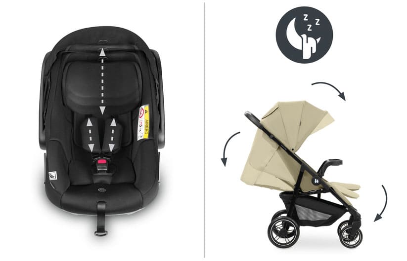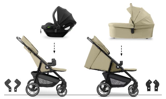 Съвместимо с рамата на количката, посредствам адаптори, които са включени в комплекта;