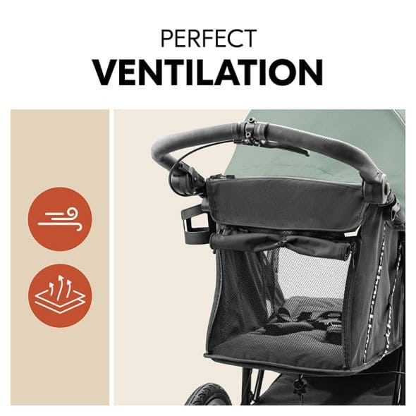 • Големият вентилационен прозорец осигурява циркулация на въздуха, а при разгънат сенник има повече вентилационни мрежи;
