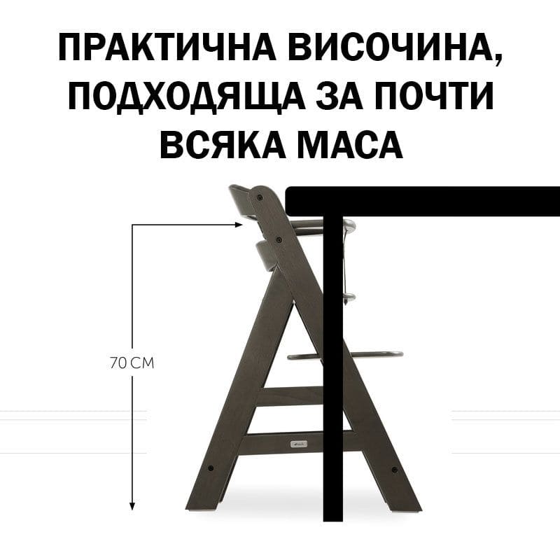 Имате възможност да го използвате от раждането на детето в комбинация с шезлонг Alpha /закупува се отделно/. По този начин бебчо ще може да "сяда" на масата заедно с цялото семейство, а вие ще можете да го наблюдавата по-лесно и удобно;