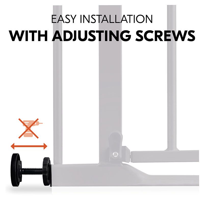 • Преградата Clear Step Autoclose 2 е предвидена да покрива отвори между 75-80 см, но с отделно предлагани удължения тя може да се използва и за по-големи до 122 см. Като използвате отделно предлаганите Y шпиндели, можете да монтирате преградата и на стълбища с кръгли пръти;