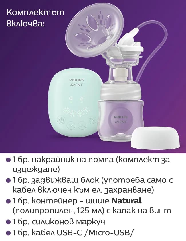Бебешки и детски магазин "СЛАДУРЧЕТА" и марката "Avent" представят на Вашето внимание електрическа помпа със следните характеристики: