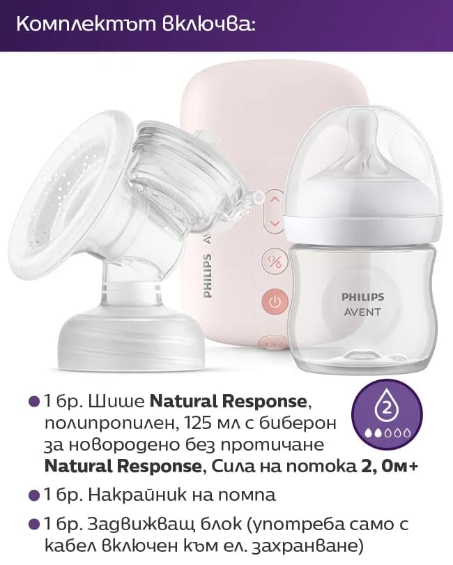 Авент Електрическа помпа Natural Motion интуитивно се адаптира и преминава от режим на стимулиране към режим за изцеждане, точно като естествено сучене на бебето;