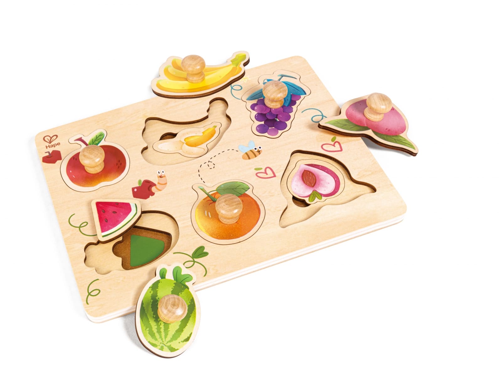 Открийте свят на плодови забавления и учене с този многопластов пъзел с щифтове;