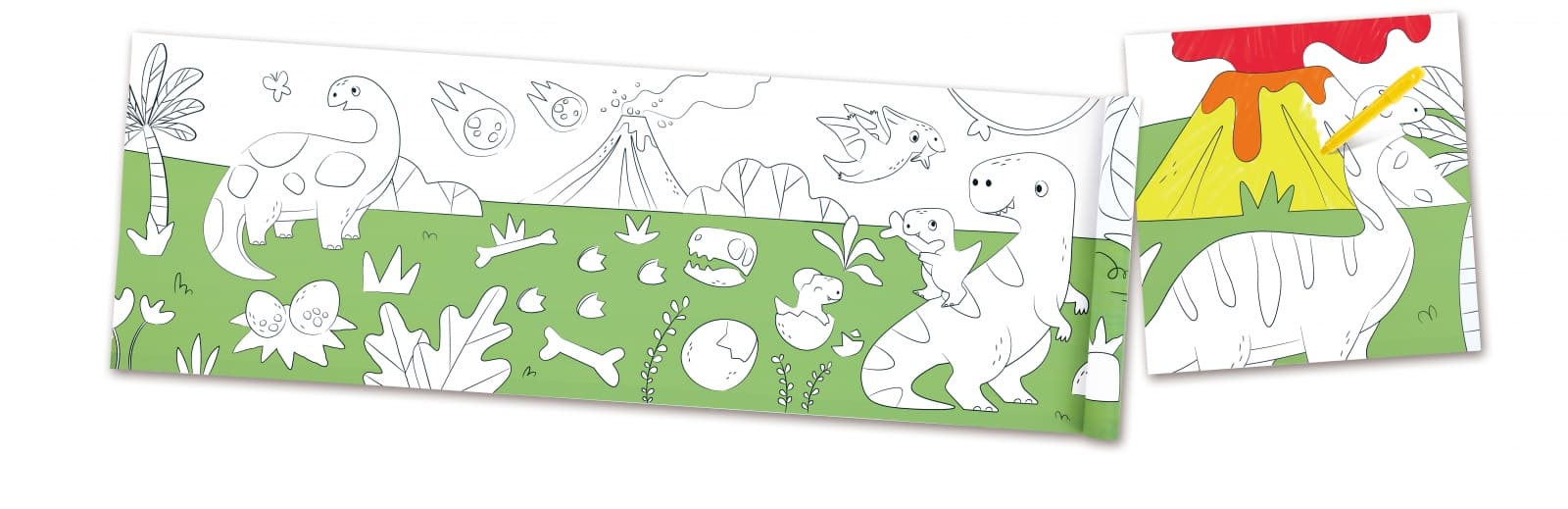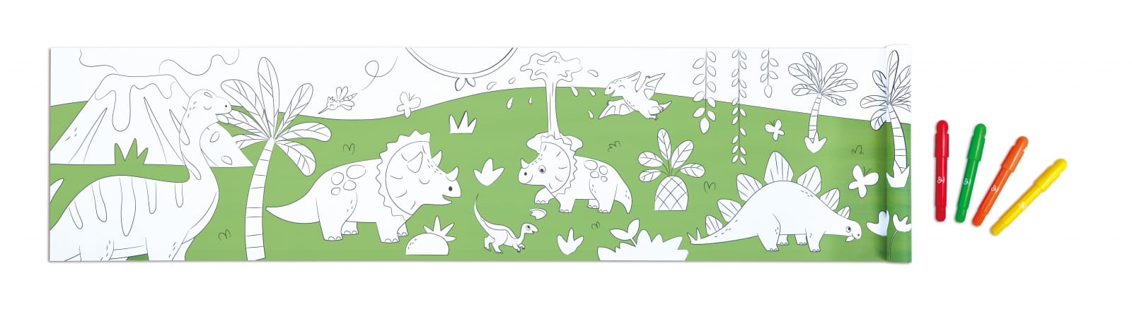 • Използвайте включените цветни флумастери, за да създадете ярък свят на динозаври;