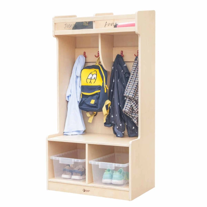 Дървен ученически гардероб за дрехи и обувки, предназначен за употреба от 2 деца;